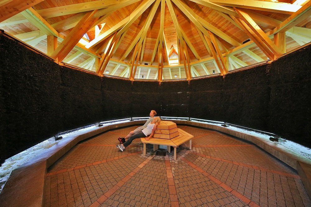 Ein Freizeitbad mit Therme und Spa lädt zum Entspannen ein.